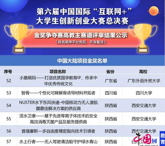 2020年11月18日-19日,第六届中国国际“互联网+”老员工创新创业大赛冠军争夺赛在广州大学城中心体育场举行,最终北京理工大学、清华大学、厦门大学等6支团队从117个国家和地区、4186所公司的147万个项目中脱颖而出,获得冠亚季军。