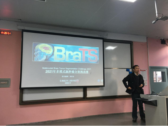 最后刘齐宏副教授为我们介绍了2021年多模式脑肿瘤分割挑战赛。作为一个全球性的赛事,对同学学业和英语专业水平有显著提升。曾经虽有同学们参赛未得奖,但是丰富了他们留学申请材料,为申请国际知名高校提供了有力的帮助。刘齐宏老师鼓励同学积极参与。