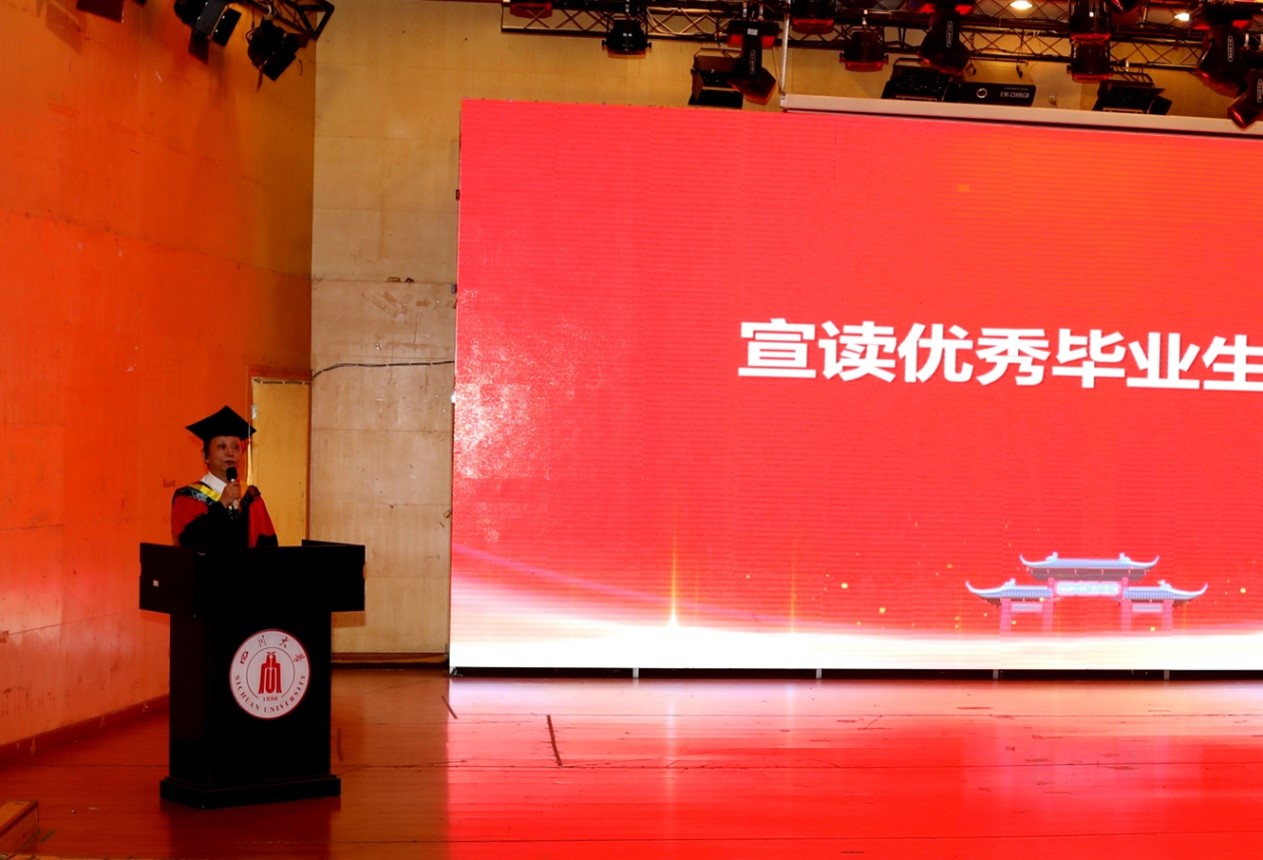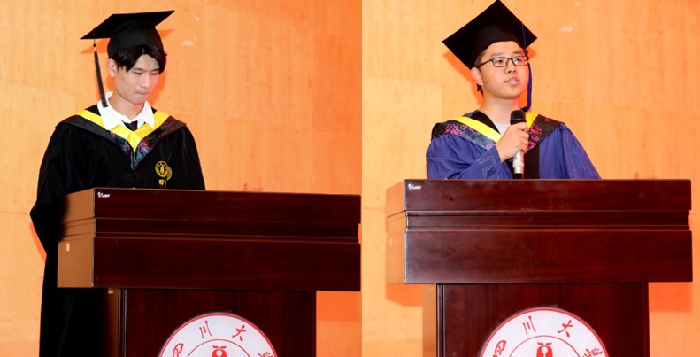 2017级本科员工毕业生代表李亚波在致辞中深情感谢了母校的倾力培养、恩师的辛勤付出和同窗的关心支持。他回首了过去的岁月,流露出了对同学、老师和母校的不舍,并表示以后将继承发扬川大优良传统,不忘初心、薪火相传,在人生道路上扎住根,实现精彩人生、成就母校荣光。