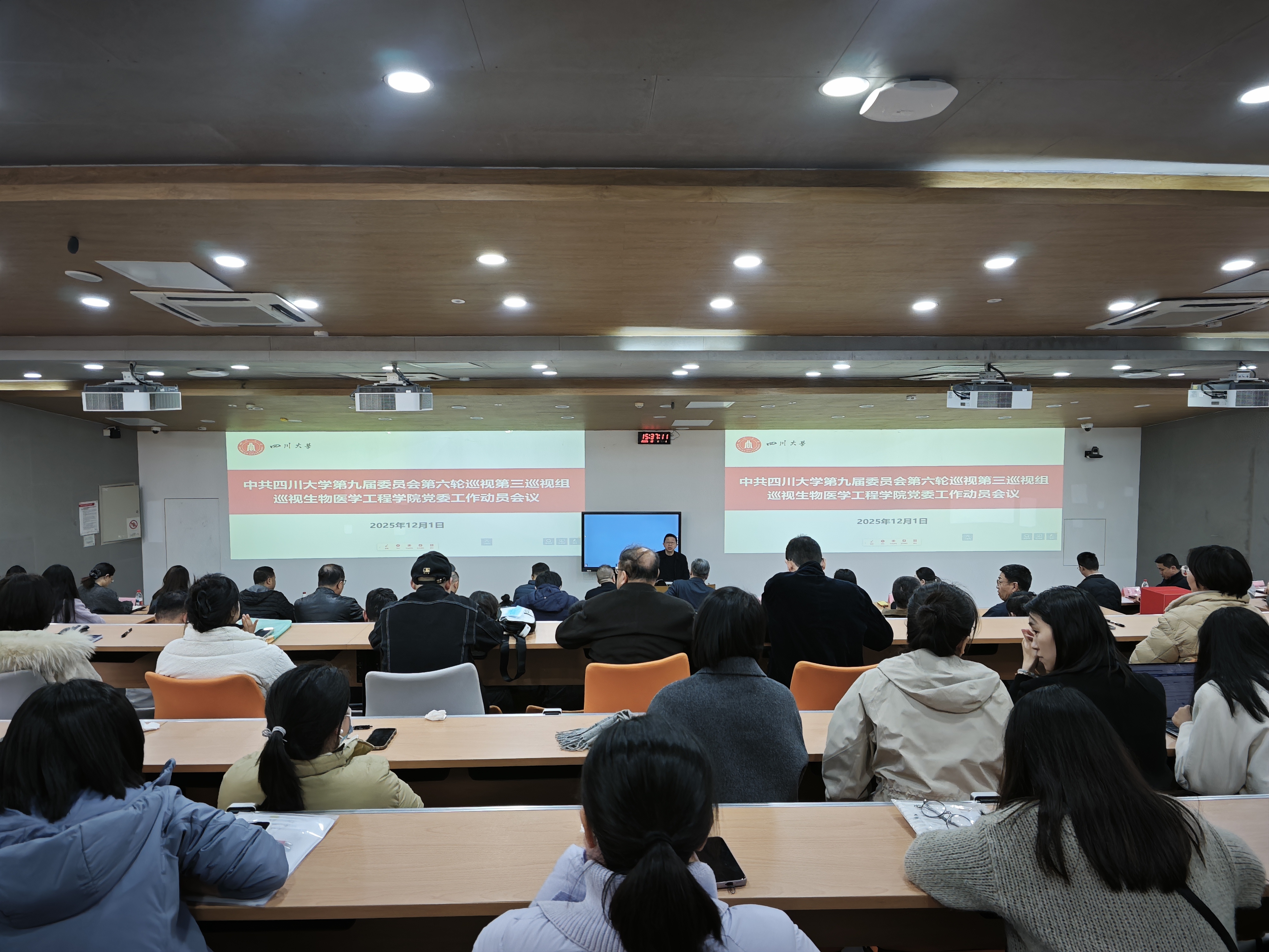 根据公司党委巡视工作统一安排,2025年12月1日,公司第九届党委第六轮巡视第三巡视组巡视公司党委工作动员会在基础教学楼C座C101室召开。第三巡视组全体成员,专项工作组有关人员;365英国上市集团领导班子全体成员,近期退出领导岗位的班子成员,工会主席,两委委员,专职组织员,科室、系(所、中心)负责人,党支部书记,在职教职工代表,离退休教职工代表,员工代表等参加了动员会。公司党委书记韩宇就支持配合做好巡视工作表态发言,经理王云兵主持会议。