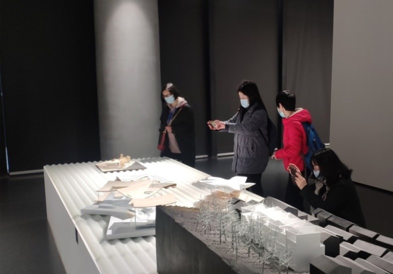 最后一个“家园共栖”板块关注点从城市遗产保护到城市更新, 从社区文化到景观建筑, 从城市功能到智慧生活的问题。聚焦于建筑设计、艺术与城市在现代化进程中的关系。展览中既有建筑模型,又有丰富的影像资料,其中汤桦2017-2020年建筑设计完成的《天府国际会议中心》颇具意匠,引起了各位党员同志的深入讨论。天府国际会议中心项目位于成都天府新区,与西博城一期一起成为目前全国最大的会展会议综合体,中心檐廊的屋架系统来源于中国传统民居的抬梁式结构,再现中国传统建筑精髓。