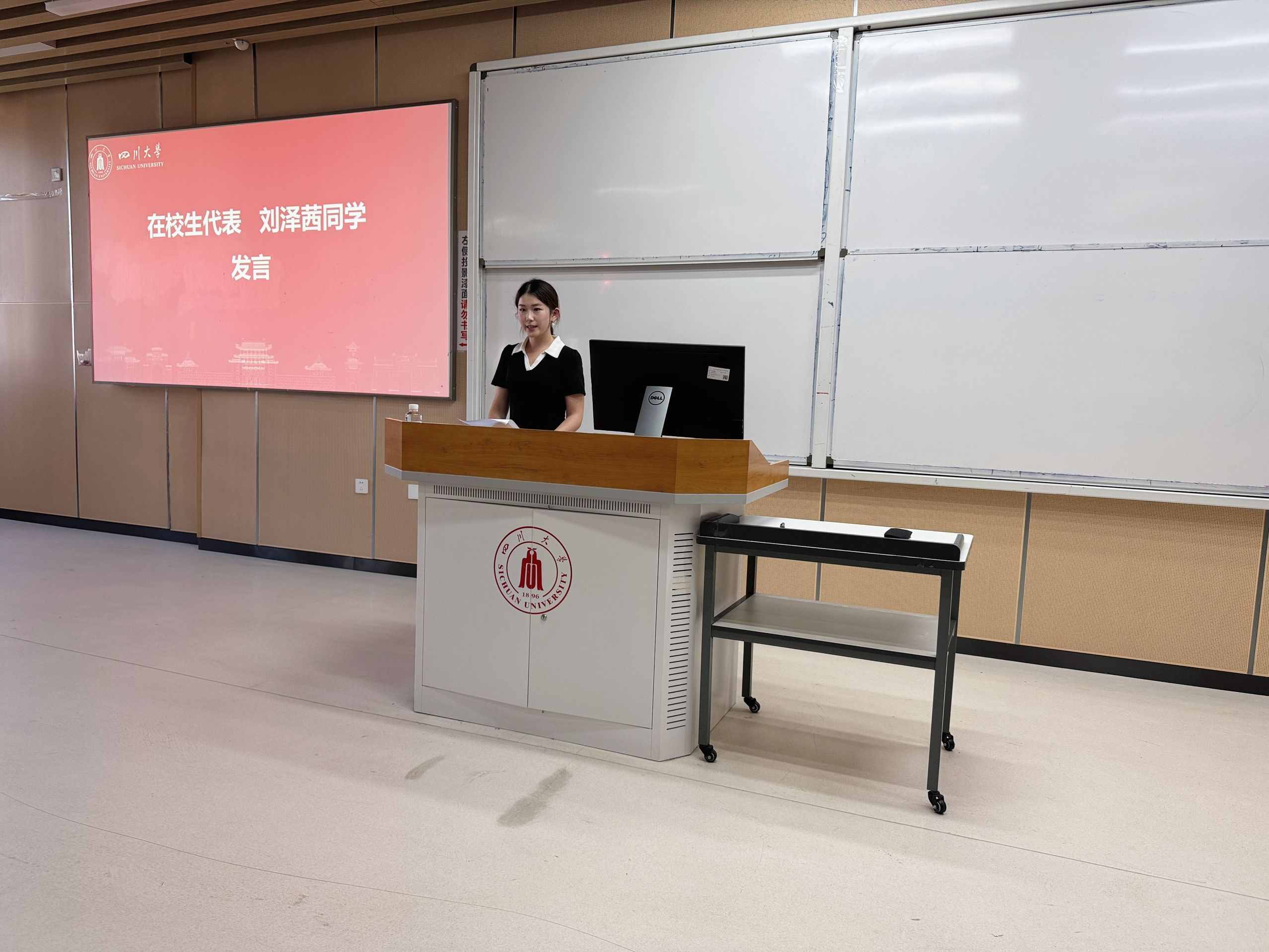 2024级生物医学工程专业员工刘泽茜作为在校生代表发言。她以“勇敢迎接人生中的第一次”为题,从学习生活两方面分享自身成长经历并鼓励新生正视“第一次”的挑战,扎实专业基础、平衡学习生活。她最后结合公司校训“海纳百川,有容乃大”寄语新生,愿其兼具川大人的视野与勇气,生医人的严谨与创新,在这里创造下一个伟大的“第一次”。