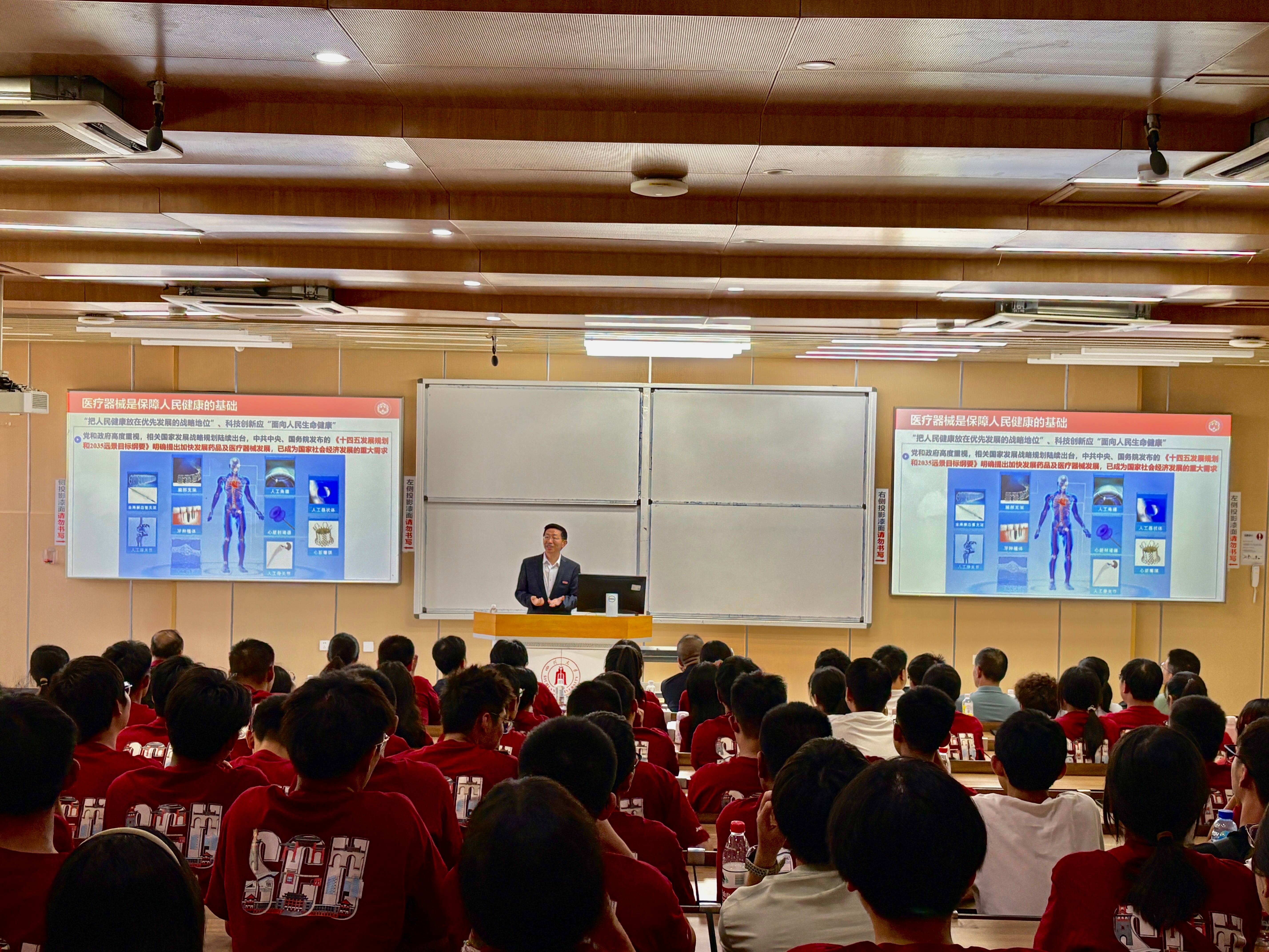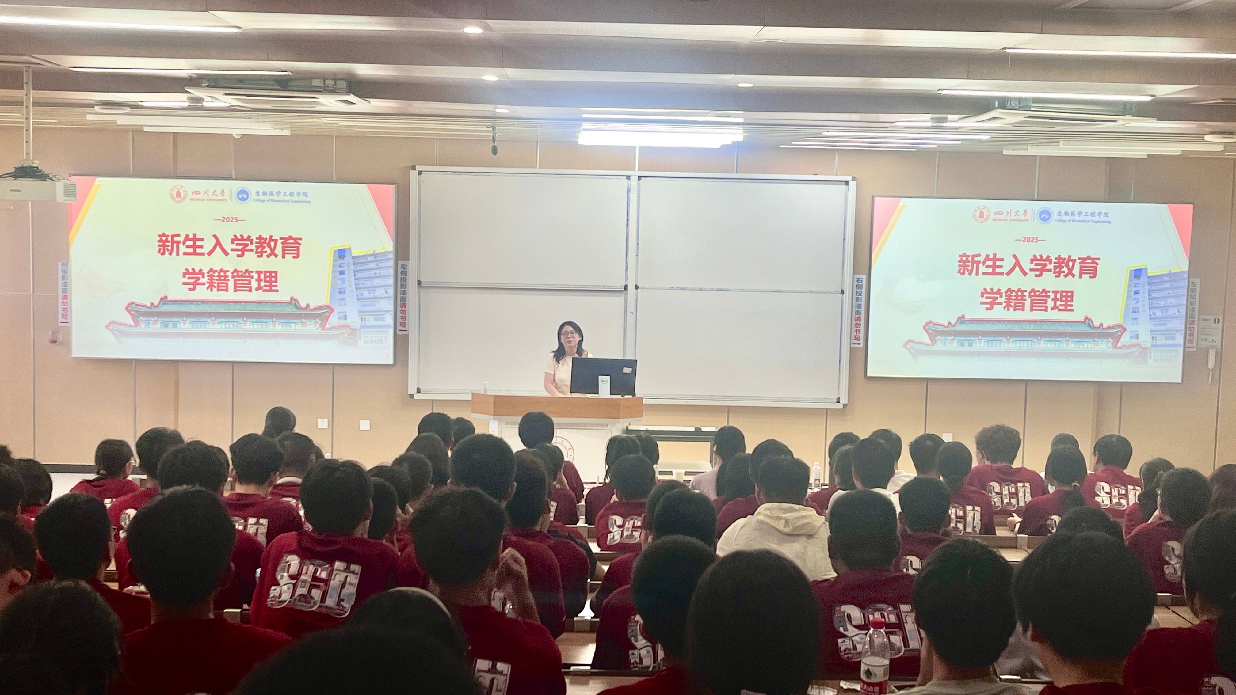 王云兵以“开启人生新阶段——做优秀川大生医人,助力健康中国战略发展”为主题为新生上了开学第一课。 他先向新生们介绍了365英国上市集团的深厚底蕴与生物医学工程学科的优势与研究成果,强调随着健康中国战略的推进,生物医学工程作为融合医学、工学、理学等多学科的前沿领域,正迎来前所未有的发展机遇。作为川大生医人,希望新生们能在大学阶段夯实专业基础、培养创新思维,未来在创新生物材料、智慧医疗系统等领域作出贡献。