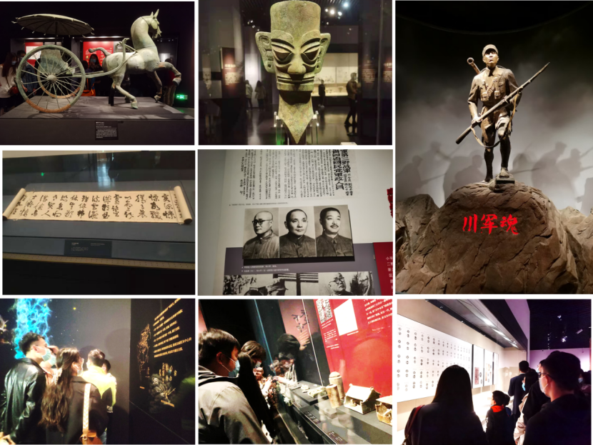 随后,党员同志排队有序进入博物馆内参观学习。博物馆总共分为6层,地下一层为“人与自然:贝林捐赠展”,地上二层至三层为成都历史文化陈列古代篇,四层为近世篇和民俗篇,五层为中国皮影木偶展。其中第四层“花重锦官城”,展示了晚清及民国以来的系列历史事件和相关文物,清晚期四川开展的保路运动,掀起反对封建和帝国主义的革命热潮。同时还展示了川军抗战的英勇历史。19世纪中叶以来,中国社会经历了前所未有的大变革,四川、成都在历史洪流中扮演了不可替代的角色:保路运动的重要策源地、抗战大后方的战略重镇、解放大西南的主要战场。这三座丰碑,永载近代中国历史史册。