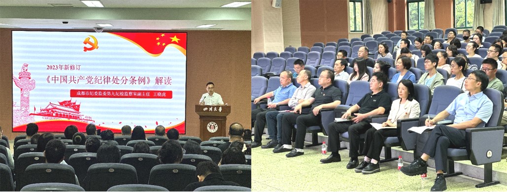 课上,王晓虎以2023年新修订的《中国共产党纪律处分条例》解读为题进行专题讲授。他从《条例》修订的简要历程、准确把握《条例》修订的主旨要义、新修订《条例》的重点内容以及切实抓好《条例》的贯彻落实四个板块展开,聚焦政治纪律、组织纪律、廉洁纪律、群众纪律、工作纪律、生活纪律六个方面,结合生动的案例,引导全体党员剖析问题成因、汲取经验教训、加强自我约束,把遵守党纪融入到日常、贯穿于工作、内化为身体力行,使党纪学习教育与立德树人、科学研究等公司重点工作紧密结合、互相促进,巩固发展风清气正的校园生态。