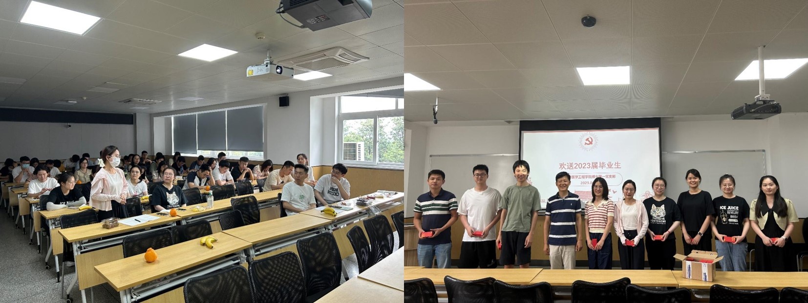 党支部书记周长春老师结合自己的亲身经历为毕业生党员讲授党课,表达了对毕业生党员的祝贺与期许。在讲话中,他叮嘱毕业生党员:一、要积极工作学习,勇于展现个人才华,发挥党员先锋模范作用;二要注重加强党性修养,保持优良的生活工作作风,坚守底线,保持清正廉洁;三要保持谦逊低调,练就过硬本领,在新的工作岗位上勇担重任。